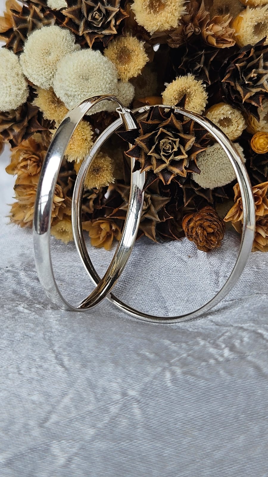 Brinco de argola em Prata 925 com 37,32 mm de diâmetro e 3 mm de espessura. Um acessório clássico, perfeito para complementar qualquer estilo com elegância e sofisticação.
