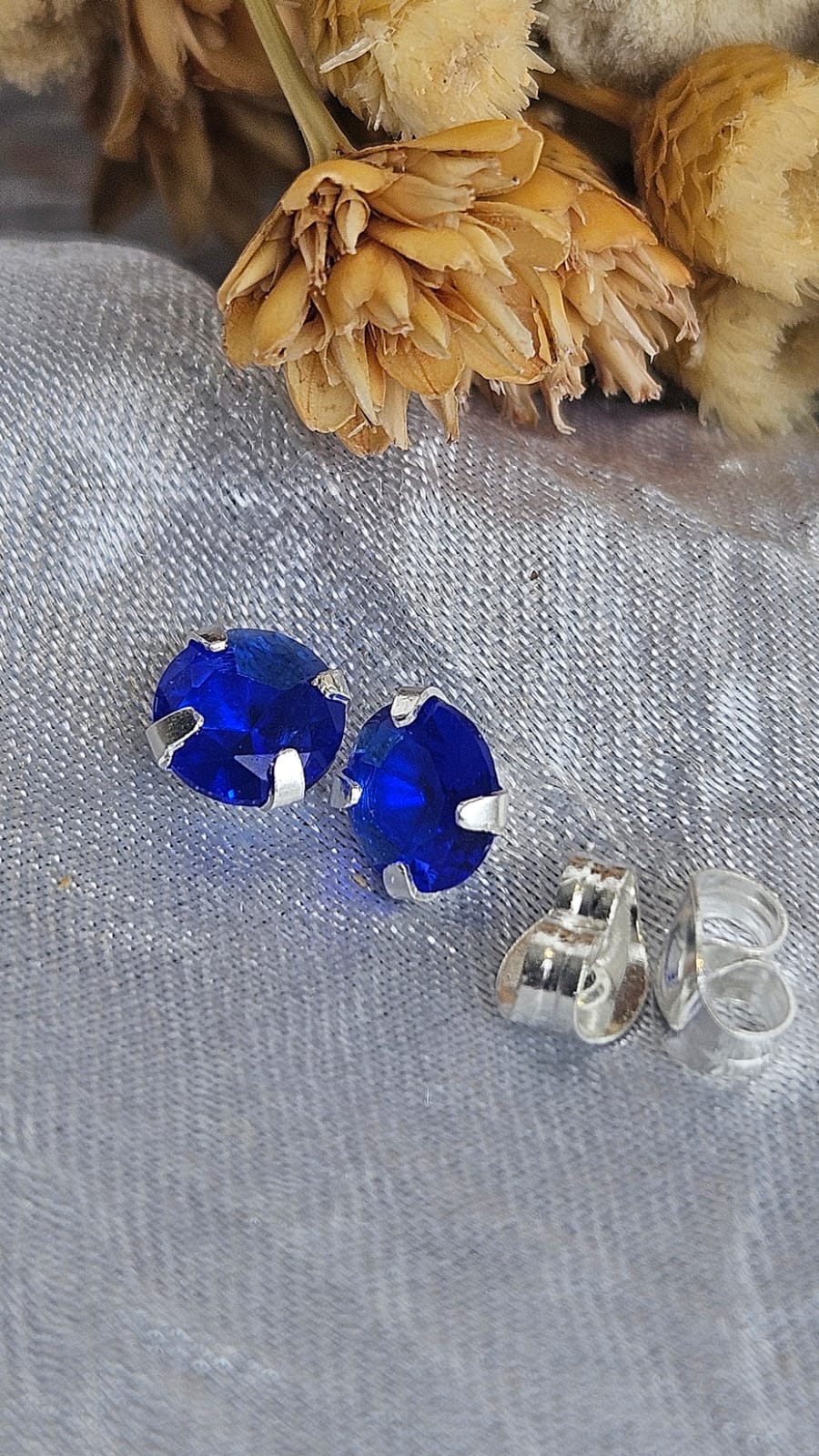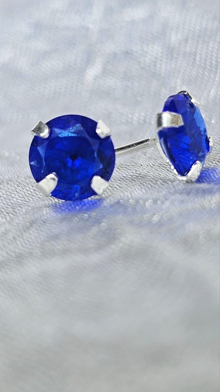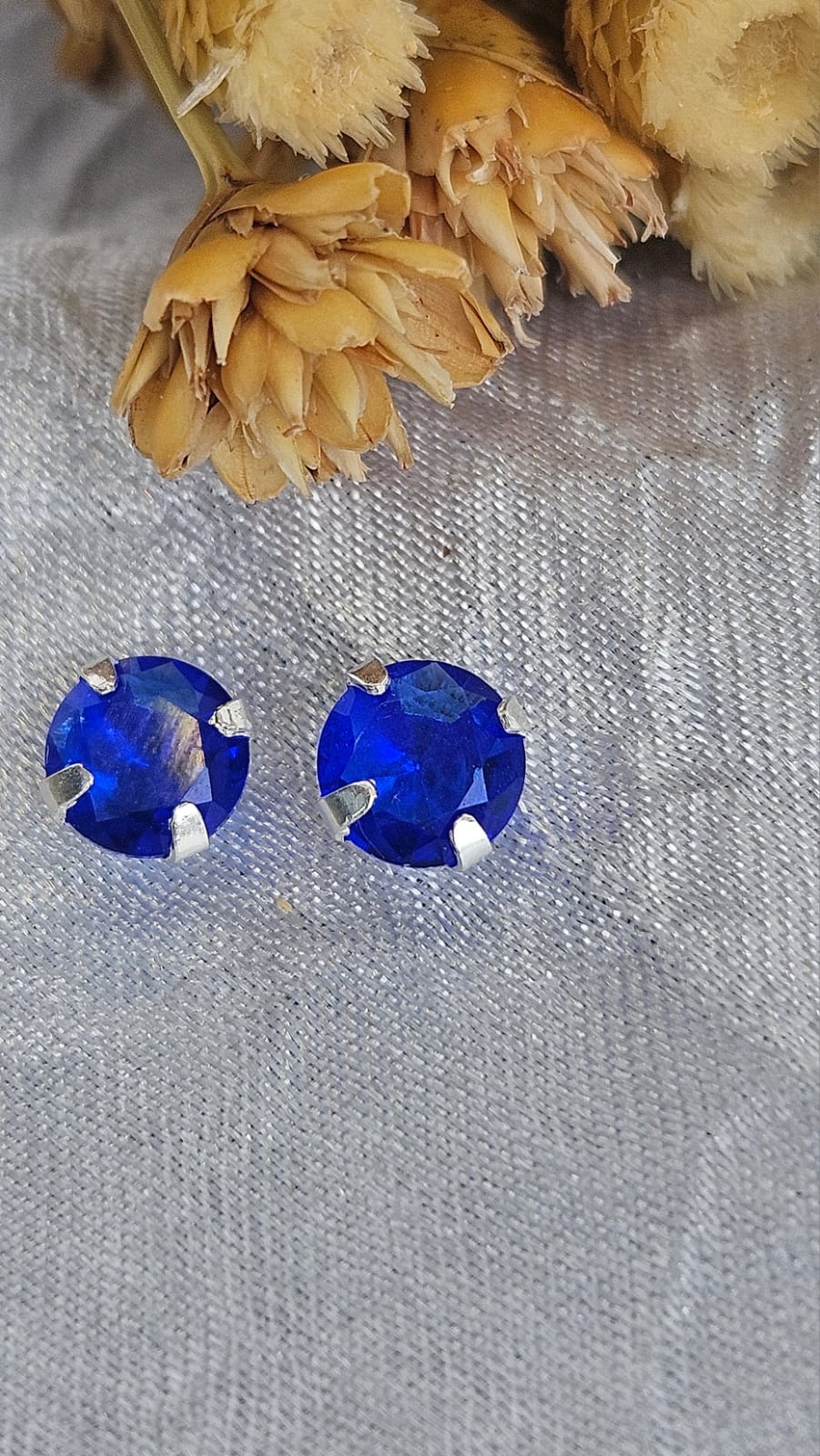 Brinco de zircônia azul safira redonda em Prata 925, com 6 mm. Uma peça delicada e sofisticada, perfeita para adicionar um toque de cor e elegância ao seu visual.