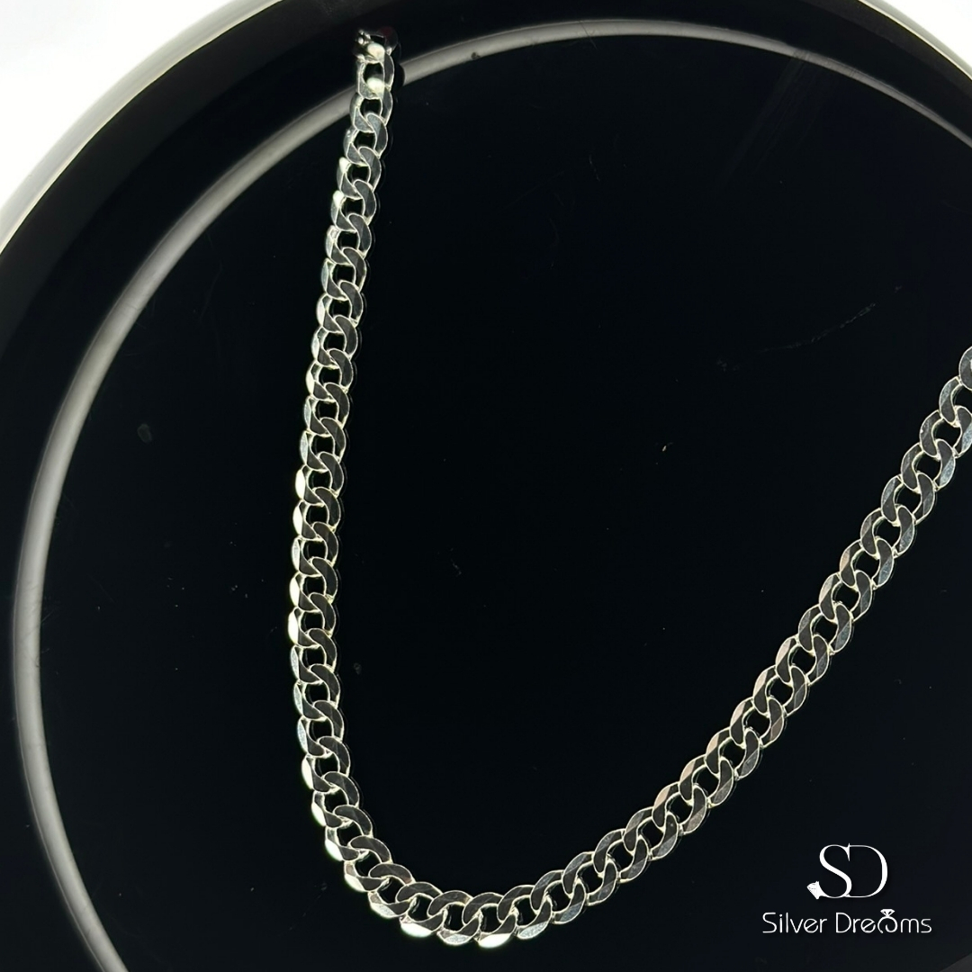 Corrente robusta em Prata 925 da Silver Dreams, com 5.5 mm de espessura e 60 cm de comprimento. Elegante e resistente, é ideal para complementar o estilo masculino com autenticidade e durabilidade.
