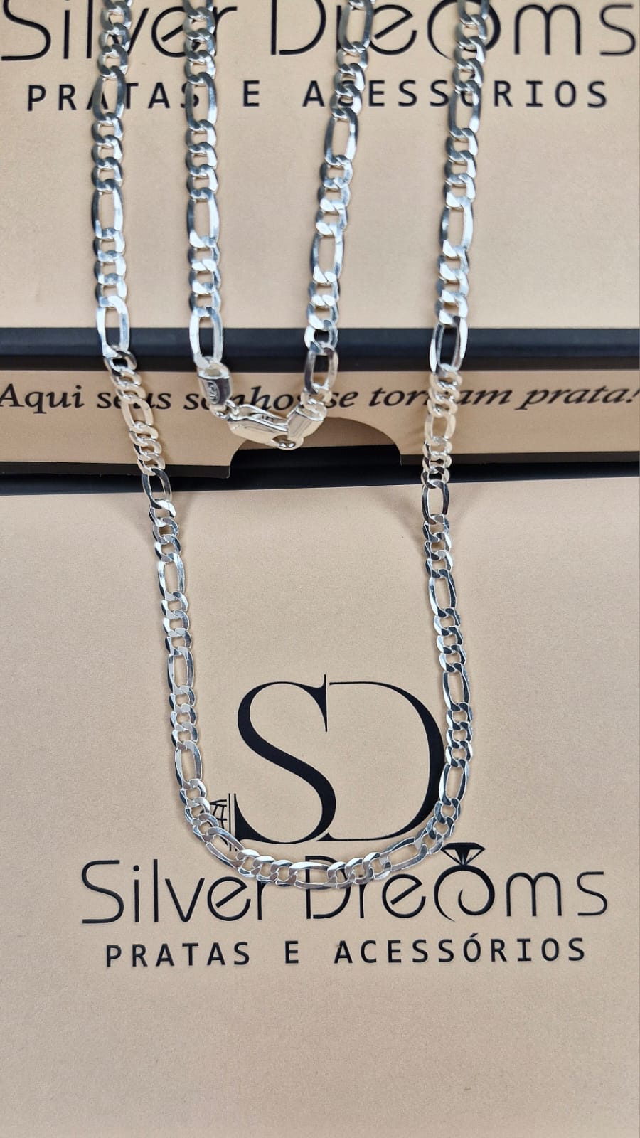 Corrente masculina da Silver Dreams em Prata 925, modelo 3×1 com 4 mm de espessura e 60 cm de comprimento. Robusta e estilosa, é uma peça clássica e durável, ideal para destacar o visual com elegância e personalidade.