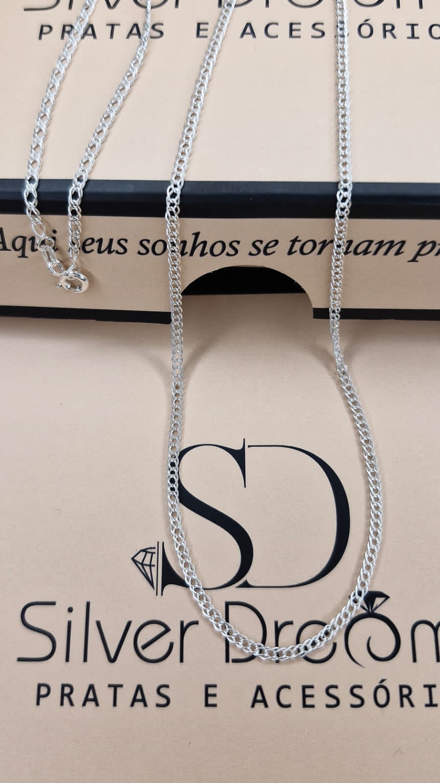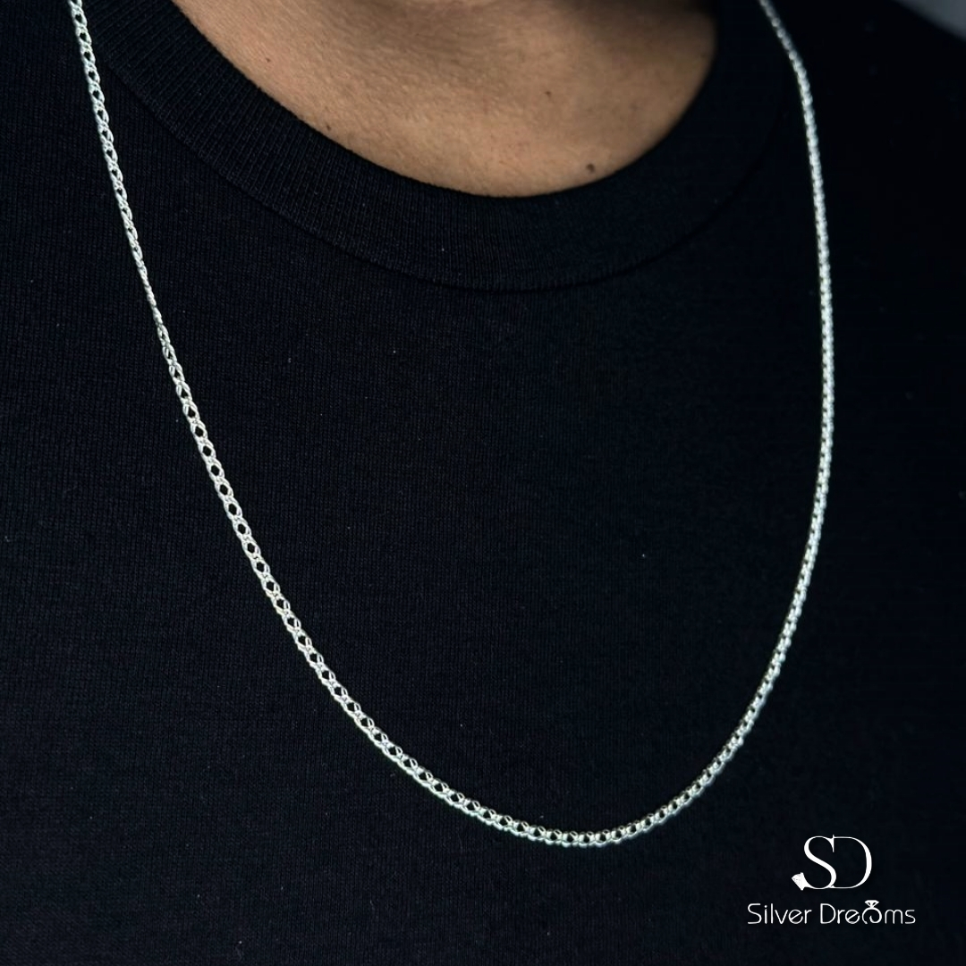 Corrente masculina da Silver Dreams em Prata 925, com elo duplo de 2 mm e 70 cm de comprimento. Sofisticada e discreta, é uma escolha perfeita para um estilo elegante e durável.