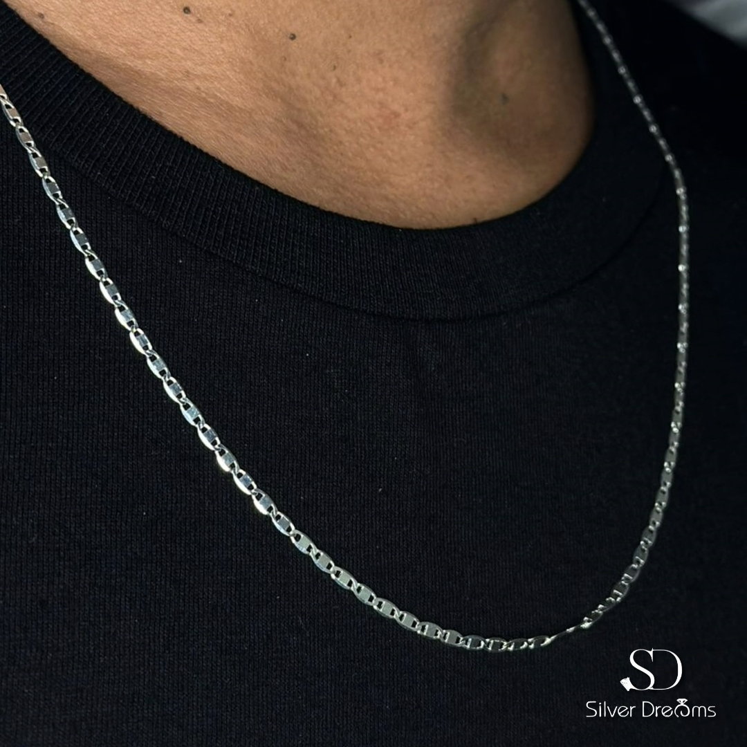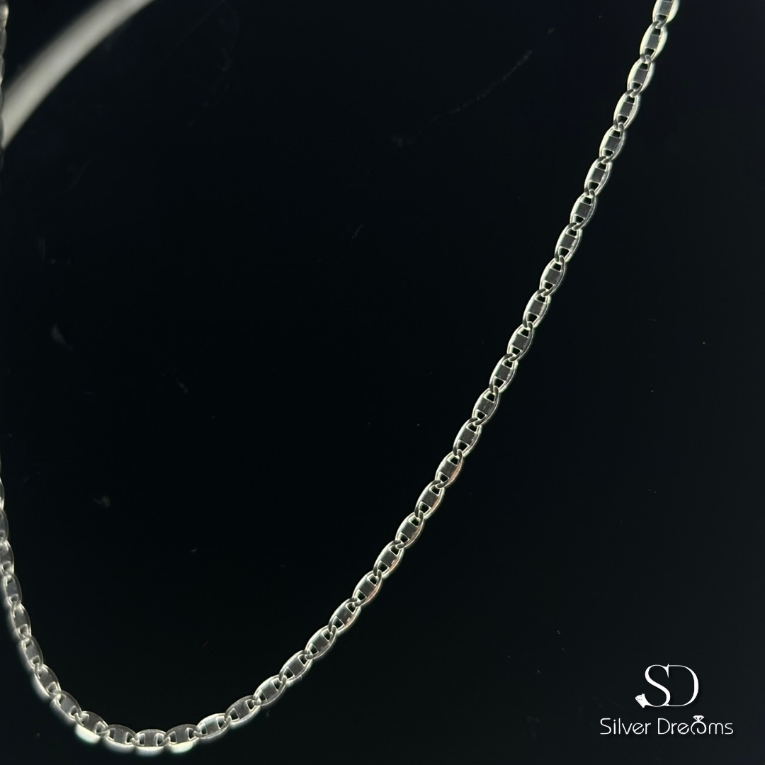 Sutil e charmosa, a corrente Piastrine da Silver Dreams é feita em prata 925, apresentando elos de 2 mm de largura e 60 cm de comprimento. Ideal para quem procura uma peça delicada que adiciona um toque de elegância ao visual.