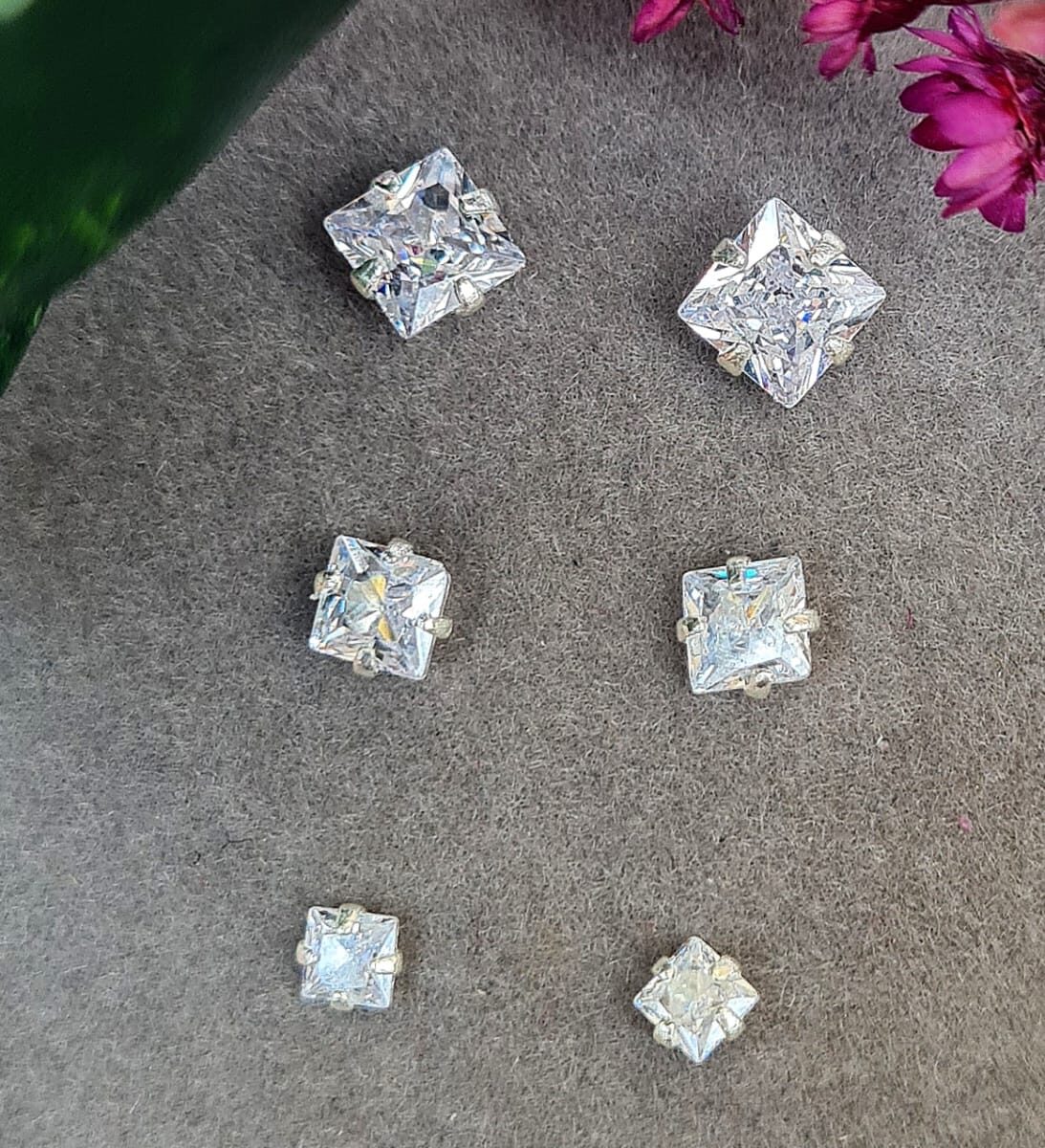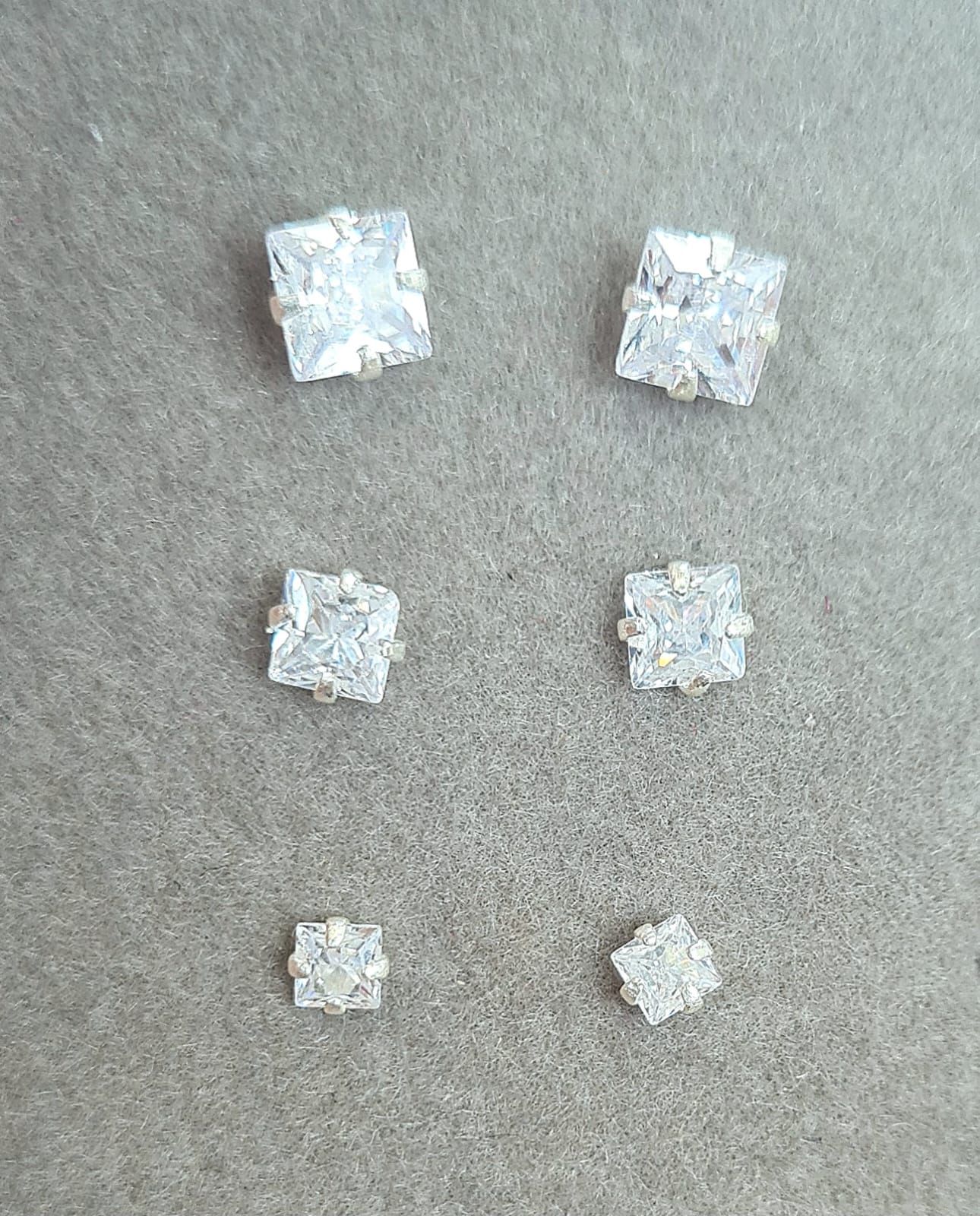Kit Trio Brinco Zircônia Quadrada em Prata 925