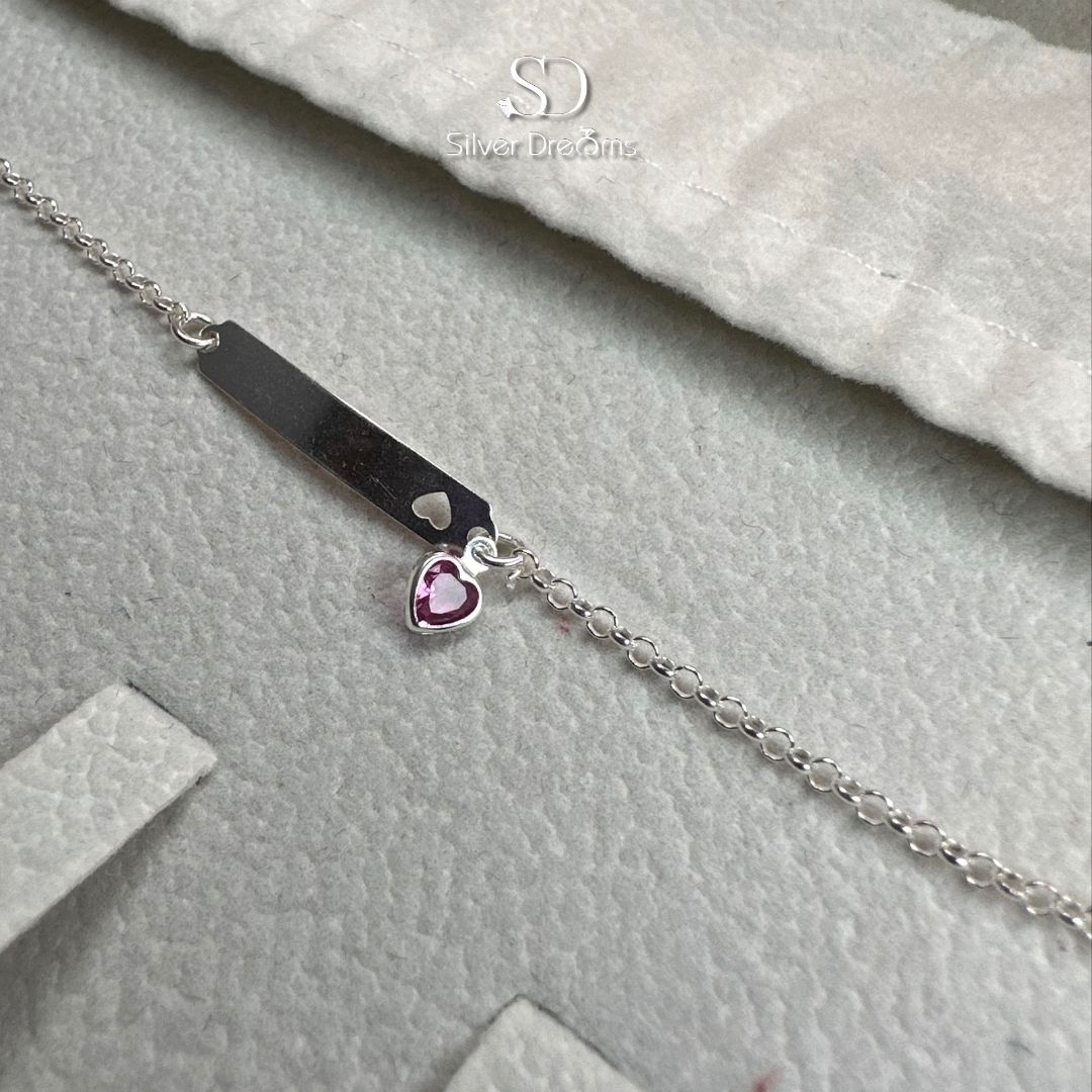 A Pulseira Chapinha Infantil Coração Vazado Personalizável 1.5 mm com Mini Coração em Zircônia Rosa em Prata 925 da Silver Dreams é uma peça delicada e cheia de estilo. Com um design encantador de coração vazado, ela pode ser personalizada e é adornada com um mini coração em zircônia rosa, trazendo um toque de brilho e amor ao visual das pequenas. Ideal para momentos especiais e presentes significativos.