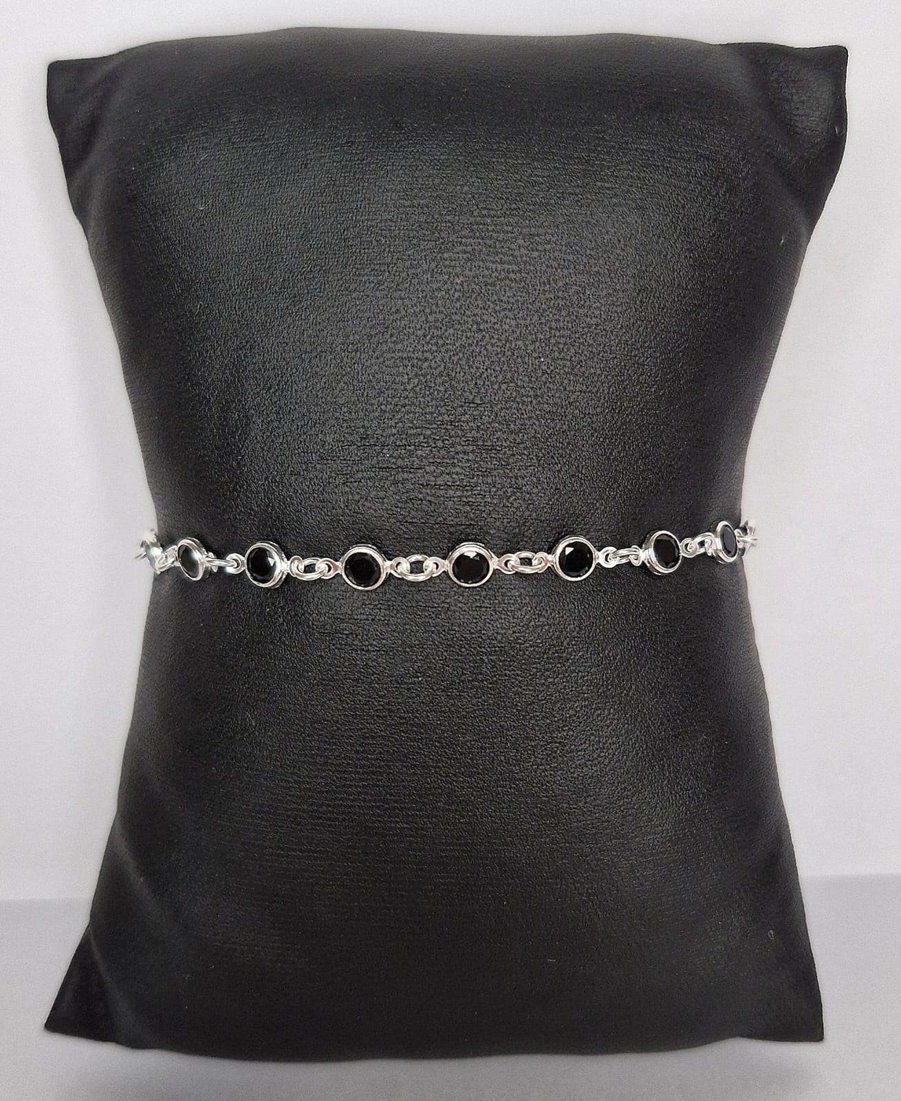 A Pulseira de 2mm com Delicadas Bolinhas Pretas em Prata 925 é uma peça sofisticada e discreta, ideal para quem busca um acessório minimalista, porém cheio de estilo. Feita com prata 925, um material durável e de alta qualidade, essa pulseira possui uma largura de 2mm, oferecendo um visual fino e delicado.
