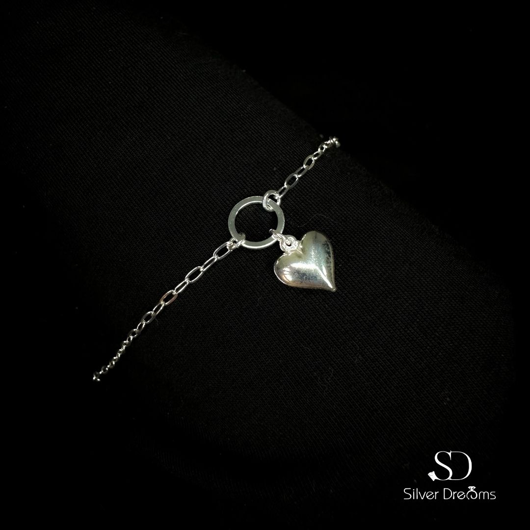 Pulseira Feminina Círculo e Coração 2 mm em Prata 925