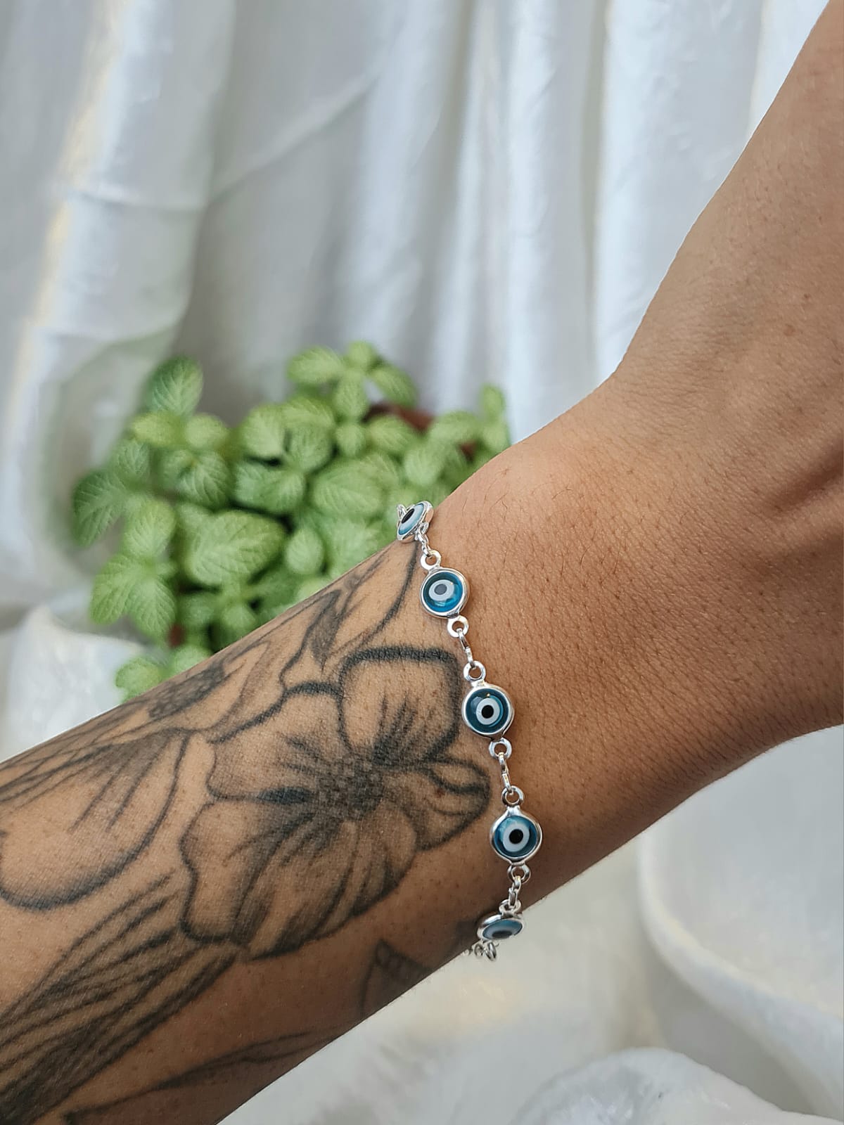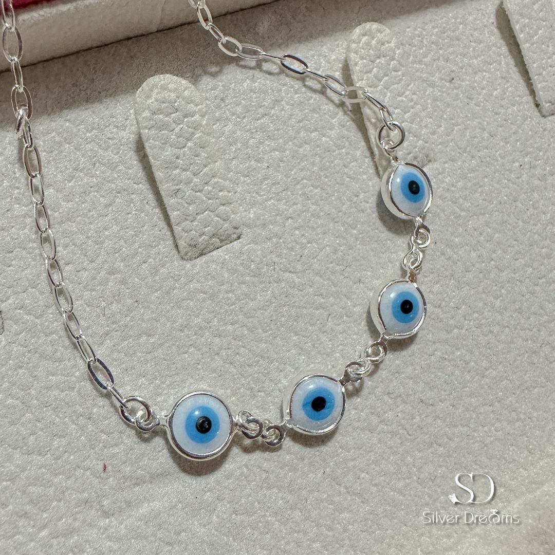 Pulseira Feminina Olho Grego 2 mm em Prata 925