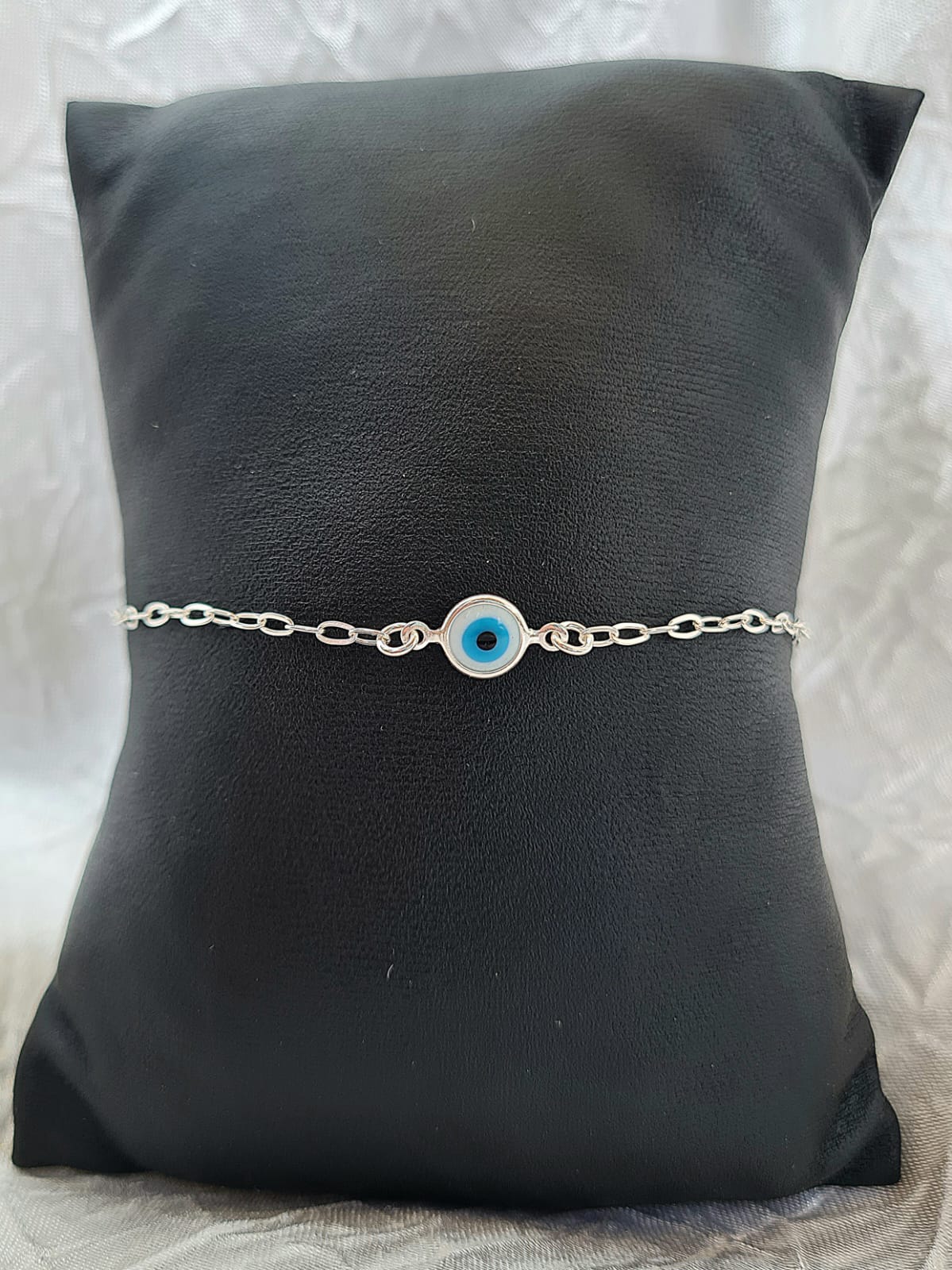 Pulseira Olho Grego Azul Celeste 2 mm em Prata 925