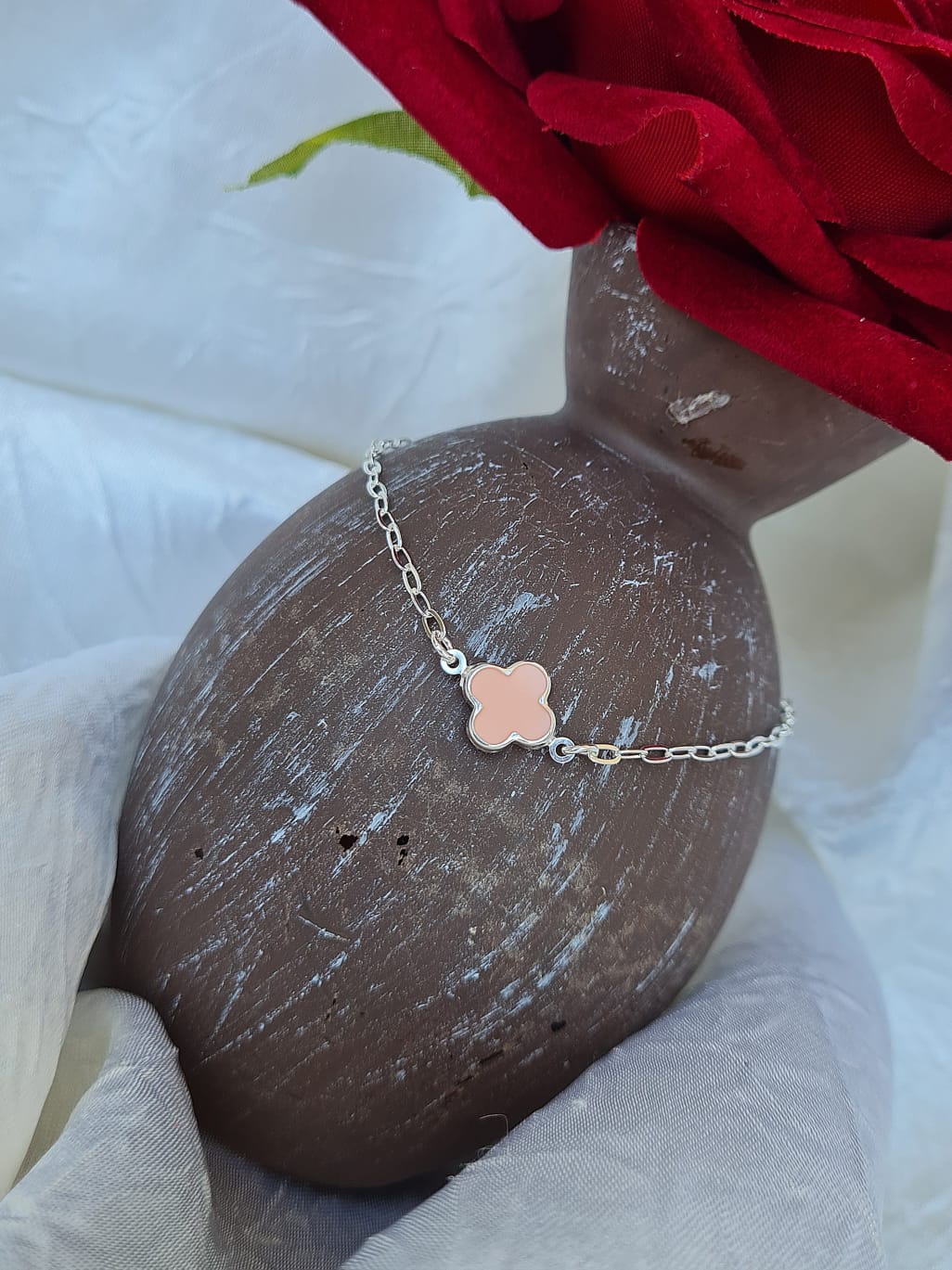 Pulseira Trevo inspirado no estilo Van Cleef 2 mm varias cores em Prata 925